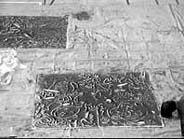 引き続き美術館スタッフにより砂等を固定していく。約2倍に希釈した木工用ボンドを噴霧器に充填、ベニヤ板一組づつ満遍なくボンド液を振りかけていく。6リットル容量の噴霧器で2〜3回の繰り返し作業を行い、15:00頃終了。翌日まで放置し、乾燥、固着させる。